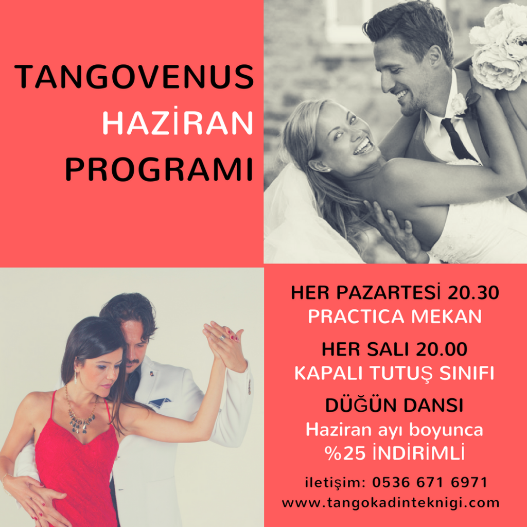 - Yaz dönemi düğünleri için harika bir kampanyamız var! Haziran ayında kayıt olmak koşulu ile, 2017 Eylül’e kadar olan tüm düğünler için, tüm çiftlere, düğün dansı paketlerimizde % 25 indirim yapıyoruz. TangoVenus farkıyla, sadece size özel hazırlanmış koreografiler ile aşkınızın dansı ile o unutulmaz geceye imza atmanızı sağlıyoruz. 3’lü ya da 5’li paketlerimizden size uygun olanı tercih edebilirsiniz.